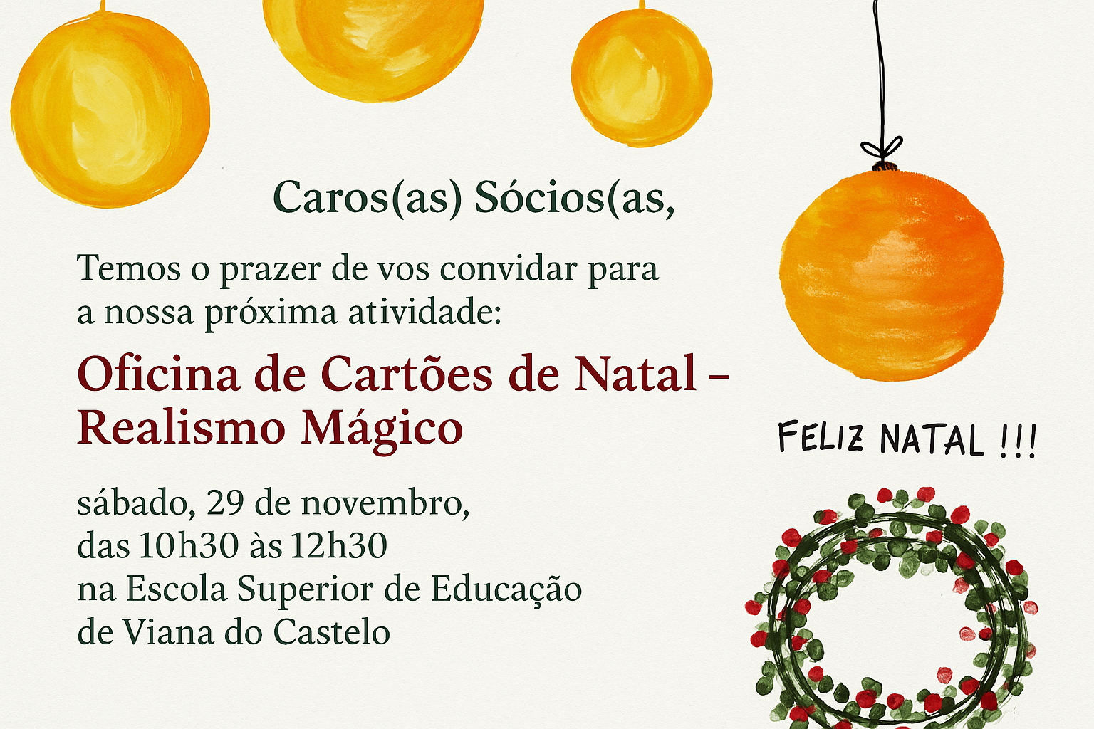 Caros(as) Sócios(as), Temos o prazer de vos convidar para a nossa próxima atividade: Oficina de Cartões de Natal – Realismo Mágico, que terá lugar no sábado, 29 […]